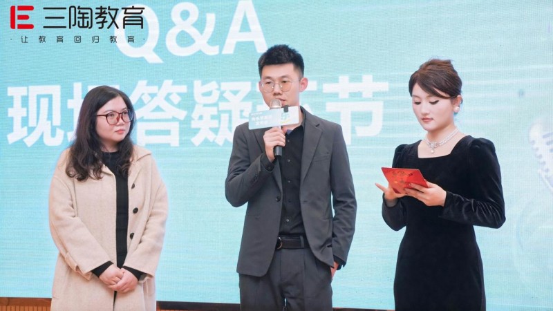 开放提问环节高效有序,陶乐学英语教研负责人、三陶教育产品研发总监李强与三陶教育产品中心高中英语教研王晓丹老师共同回应观众对产品的疑问。
