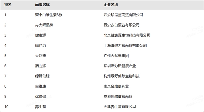 棘小白维生素B族、赤大师、健康源、维他力、天然宝、活力派、绿野仙踪、金维康、优倍健、养生堂。