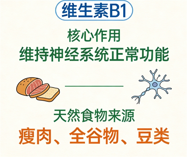✅ 能量金钥匙:8种必需成员精密协作,将食物转化为细胞能量(B1、B2、B6主导),同时守护神经与血液健康(B12、叶酸核心作用)