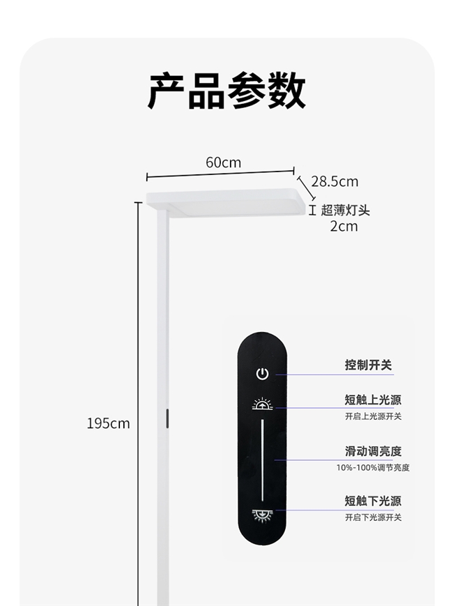 丝滑的滑动调光:配备高精度触控条,支持 10% – 100% 亮度无级调节 。相比传统的档位调节,这种设计能更精准地匹配用户对光线的微细需求,找到最舒适的亮度平衡点。