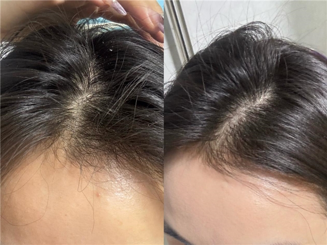 A: 周期使用后可实现多重递进效果:4周左右明显减少掉发量,头皮油腻、瘙痒问题缓解;8周左右脱发区域开始冒出新生绒毛;16周后新生绒毛逐渐变粗变黑,发缝或稀疏区域明显变密,同时发丝强韧度提升,头皮整体亚健康状态改善。