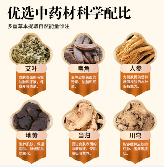 独创多药材科学配伍:皂角净垢,艾叶和川芎协同抑菌,地黄人参补水,白芍、鸡血藤修复舒缓,氨基酸起泡柔润包裹。涂抹后泡沫细腻,洁净力与温和性兼顾,长期使用不假滑。男士油皮、背痘、干敏、全家人都适用。