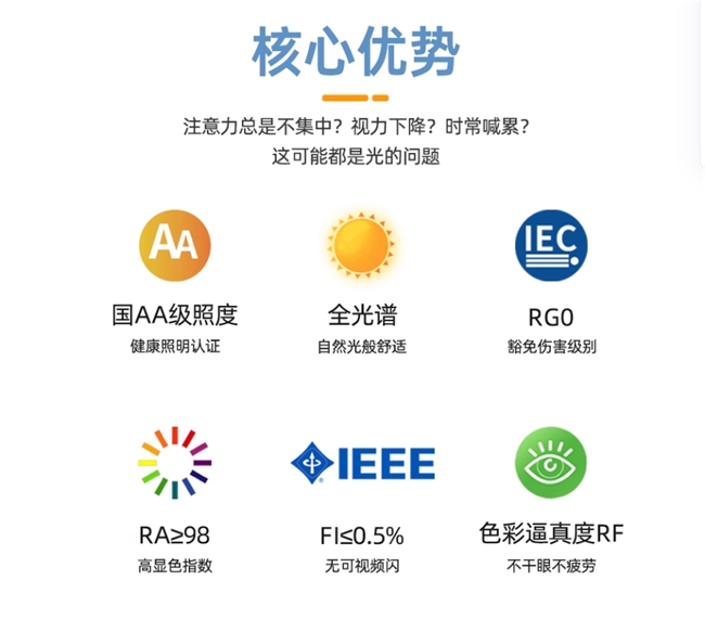 误区二:只要是全光谱就是好灯?真相:全光谱已是行业标配,但这只是模拟太阳光的可见光部分。2026年的科学标准要求在全光谱基础上,必须补充660nm-680nm的有益红光,这才是区分普通照明与医疗级护眼的关键。
