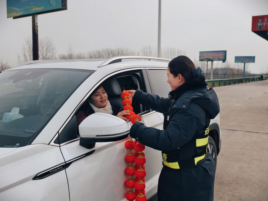 活动中,收费站精心布置新春装饰,红灯笼、中国结等错落点缀,站区处处洋溢着喜庆祥和的节日气息。工作人员热情地为司乘送上小灯笼等新春礼品,一句句“过年好”“一路平安”……温暖人心,得到过往司乘的频频点赞与感谢,现场暖意融融。