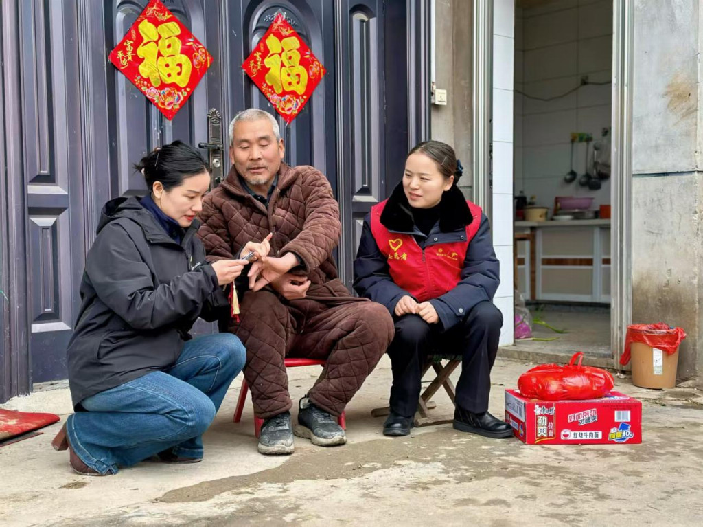 3月4日下午四点,志愿者们带着奶粉、方便面、豆奶等慰问品,火速赶往李爷爷家中。今年65岁的李爷爷,子女常年在外奔波,因腿脚不便,平日里仅靠周边邻居照料,独居生活冷清孤寂,许久未有亲人相伴的暖意。“李爷爷,我们来看您了!”一句亲切的问候,瞬间打破了小院的沉寂,欢声笑语充盈着整个庭院。