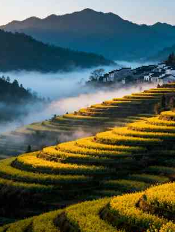 有时候还能看到村民在田里忙碌,或者挑着工具从你身边经过。这种“有人生活在这里”的感觉,会让整个场景更立体,而不是单纯的观光。