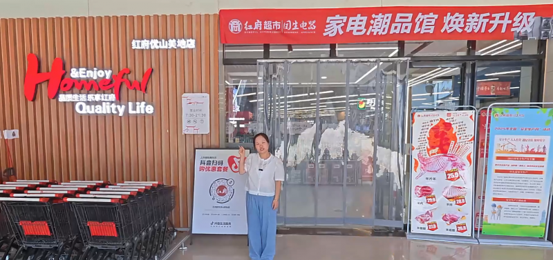据实时数据显示,本场直播商品交易总额(GMV)达359W+,成为商之都深化“实体+数字”转型的亮眼实践。红府超市借助抖音生活服务平台精准触达本地消费者,以优质爆品和超值优惠有效激活消费潜力;直播中还特别引导观众“抖音搜索@安徽商之都@红府超市”,进一步强化后续流量沉淀,为本土商业数字化营销探索出切实可行的新路径。为将线上的火热人气同步引流至线下,如今红府超市商场内已焕然一新,中心广场沿街完成升级,醒目的活动海报与温馨的购物环境静候光临,诚邀广大消费者到店亲身体验品质好物与贴心服务。