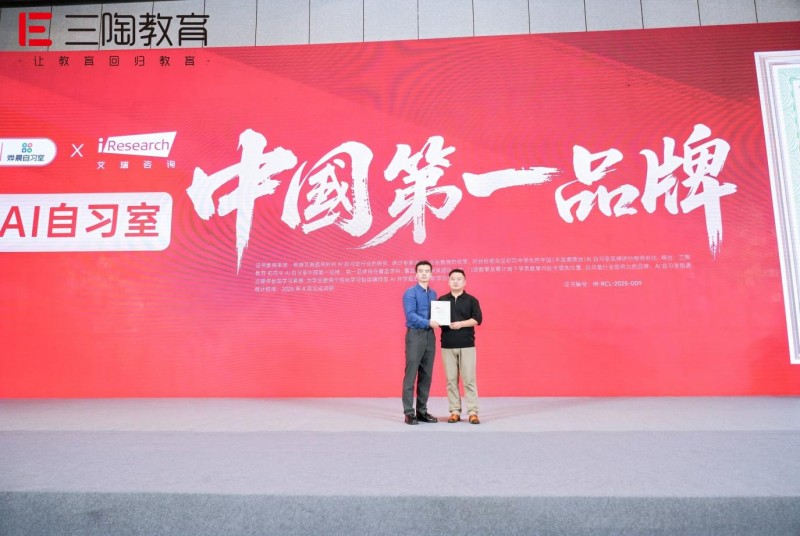 近日,在山东济南第九届秋季业绩增长大会上,由我校优秀校友张锦超联合创办的三陶教育,凭借在 “AI + 教育” 领域的深耕实力,喜获艾瑞咨询权威认证,荣膺 “初高中 AI 自习室中国第一品牌”。这一荣誉,不仅是对三陶教育行业地位的高度认可,更是张锦超校友践行 “以技术促公平、以创新提质量” 教育理念的生动见证,彰显了我校教育学院 “弘学笃行 修己树人” 培养模式的卓越成效。