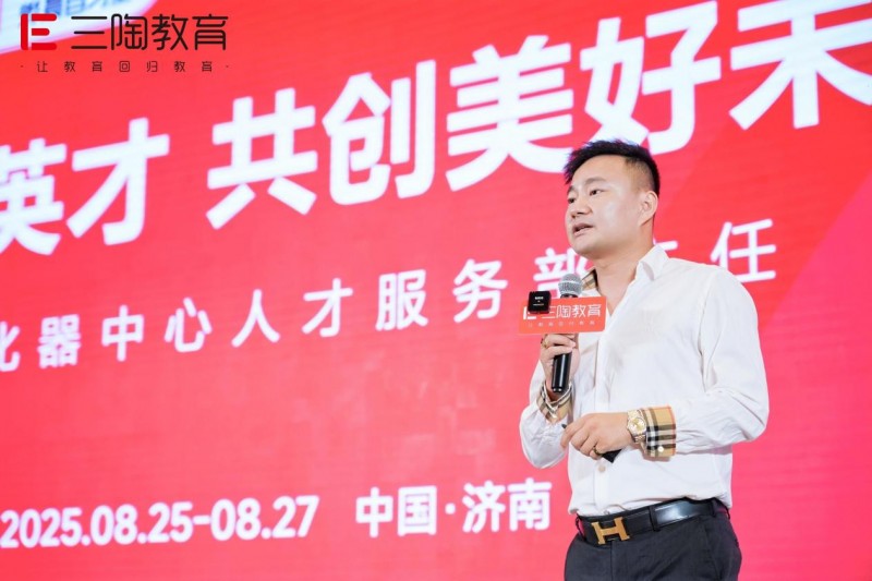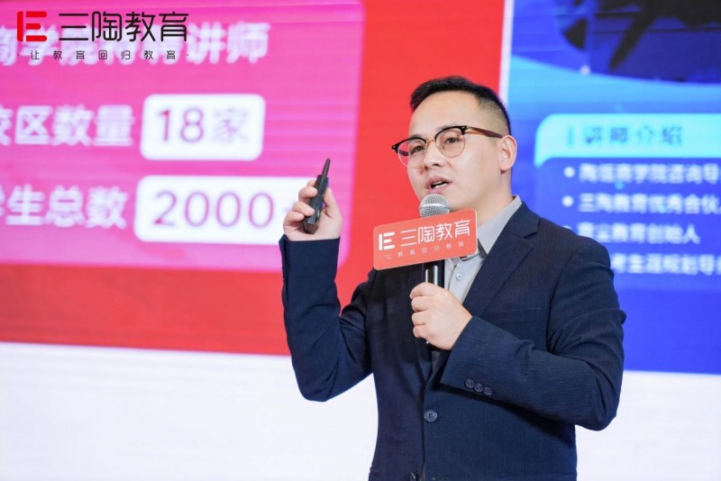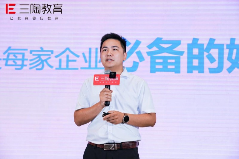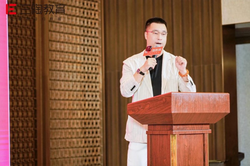 随后,三陶教育创始人、董事长张锦超发表主题分享“高目标、细规划、强品牌的增长战略”。他从宏观趋势谈到具体路径,搭建起一个完整的增长逻辑。这不仅是一套企业发展的方法论,也为新时代教育模式的升级提供了可借鉴的思维框架与实践工具。