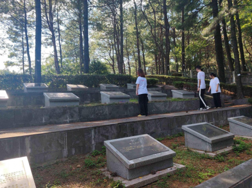 苍松凝翠,丰碑矗立。实践队专程前往黄龙岗烈士墓与皖南事变烈士陵园,举行庄重的献花仪式与祭扫活动。队员们手捧白菊,缓步走向烈士碑,鞠躬致敬间,告慰长眠的先烈;默哀沉思时,传承不朽的信仰。每一朵鲜花,都是对英雄的追念;每一次驻足,都是对初心的叩问。