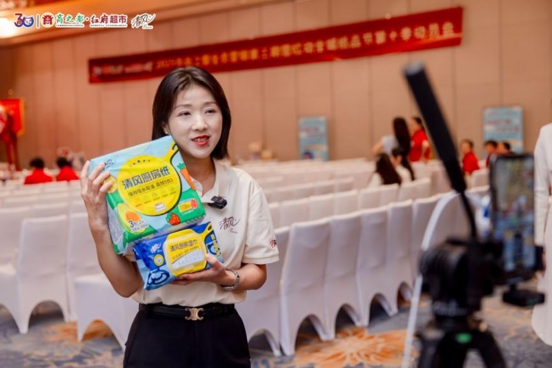 9月12日,商之都以“红动全城,柔护全家——商之都‘质量月’品质产品推荐”为主题,成功举办红府纸品节专场抖音直播。活动于当日13:00-19:00在皇冠假日酒店与网新科技专业直播间同步进行,由两位网新专业主播主持,采用“直击启动会现场预热+全网低价专场销售”的创新模式,实现线上线下联动启动,让消费者近距离感受活动氛围、深入了解红府纸品品质,并以超值价格将优质纸品送入千家万户,实现品牌声量与产品销量的双重突破。
